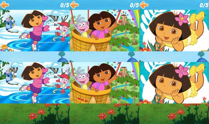 这部游戏是以爱探险的朵拉为主题的找茬类游戏,它的玩法与常规的找茬游戏差不多,都会给到人们两张看上去几乎一样的图片,要各位找出里面的不同之处。游戏有多个关卡可供挑战,所有关卡都会在左上方标注出不同之处的数量,只要全找出就能继续自己的挑战之旅。同时,挑战过的关卡也可不限次数的重复游玩。