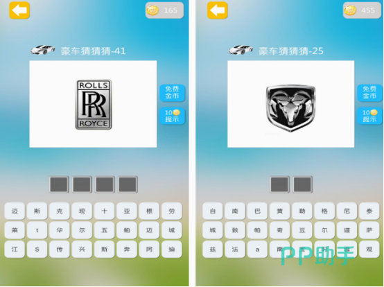 由于现实生活中汽车品牌数量特别的多,所以有了这款根据豪车的品牌,将名字顺利的猜出来的手游,如果每次都能顺利猜对的情况下,可以获得相应的奖励。如果自己想要增加对豪车这方面的知识,可以在这款游戏当中,进行全方位的了解。即使自己也不知道的情况下,还能使用所获得的金币给予提示,还会有相应的文字,只要点击文字输入正确即可。