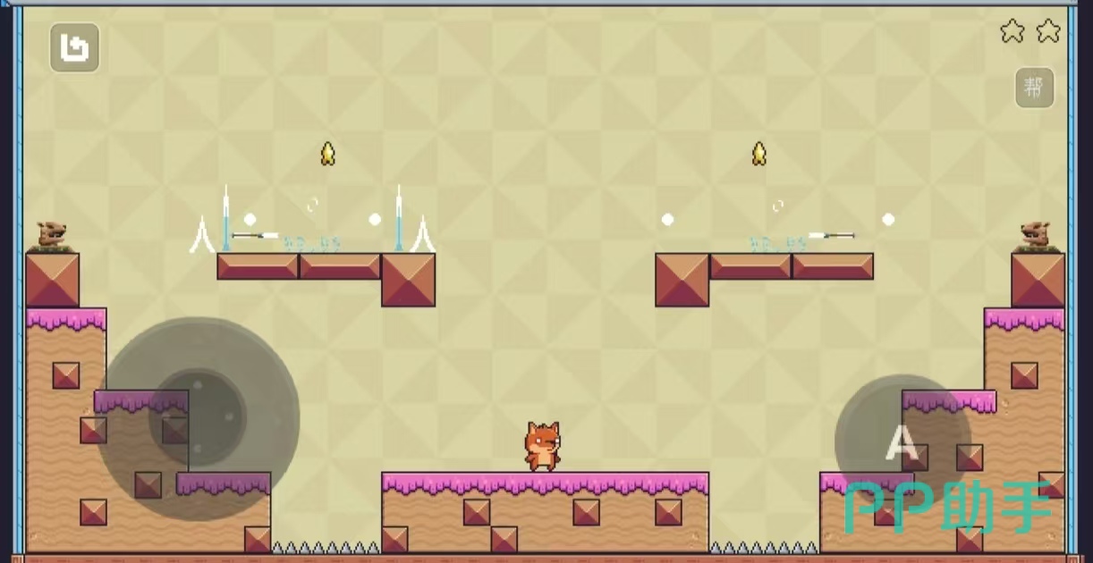 《小狐狸的冒险之旅》打造了一个卡通的像素世界,玩家需要帮助小狐狸角色去寻找家乡,在过程中将不断的闯关进行历练,会遇到很多的敌人和难题。在闯关的路上可以收集金币和钻石,最终通过种种挑战会成功的到达洞穴,游戏内的小狐狸角色非常可爱,可以用收集的这些奖励来进行解锁,可以获得很多新的道具和能力,还有很多需要动脑筋解谜的问题。