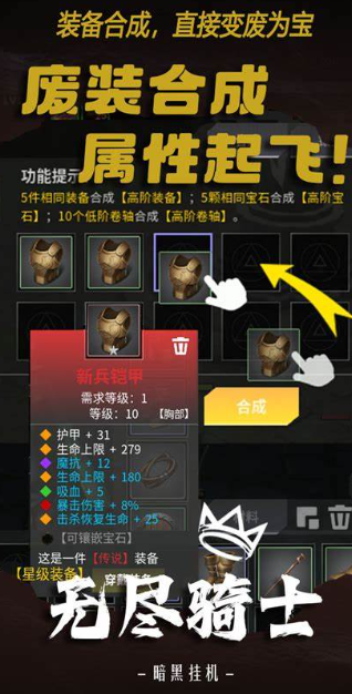 无需紧绷神经的操作,只要为你的暗影化身选定战斗路线。那些沉睡在深渊的传说级武器,会随着自动战斗的节奏陆续苏醒。暴击流、毒素流、嗜血流...每种战斗风格都像调制鸡尾酒般自由勾兑。尤其当面对体型堪比钟楼的魔物时,系统会为你自动触发华丽的处决动画,战利品如暴雨倾泻的瞬间,才是真正的高潮时刻。