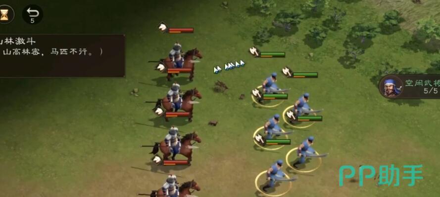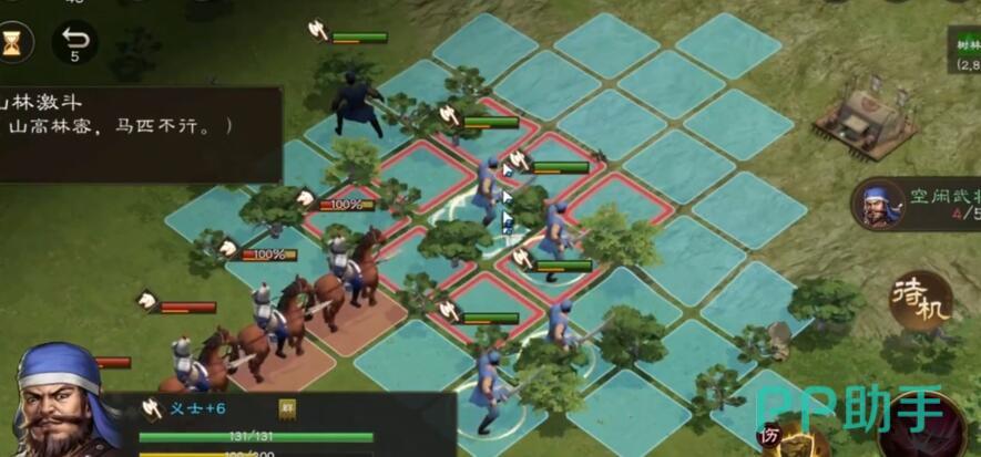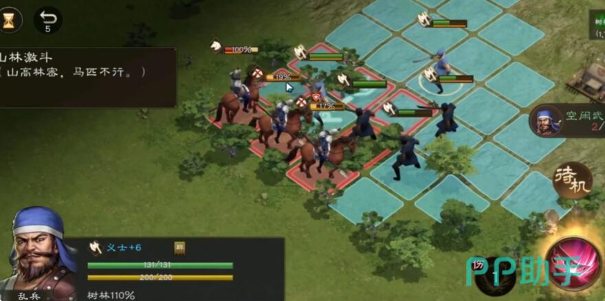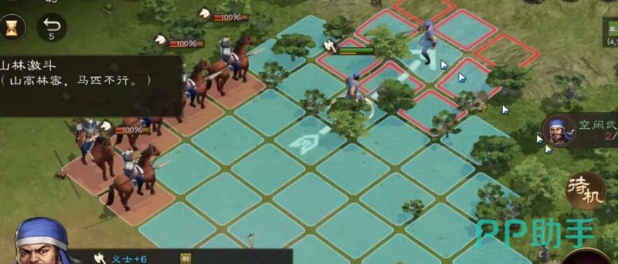 关卡的核心机制在于地形加成与兵种克制。山贼在树林和山地地形可获得10%攻防加成,而骑兵在树林中移动力下降且无法发挥冲锋优势。开局时,玩家需立即将全部山贼单位向地图右侧树林区域集结,利用密集树木形成天然屏障。注意每个山贼最多承受一次骑兵攻击就会阵亡,因此必须确保单位站位保持2格以上间距,避免被连续攻击。