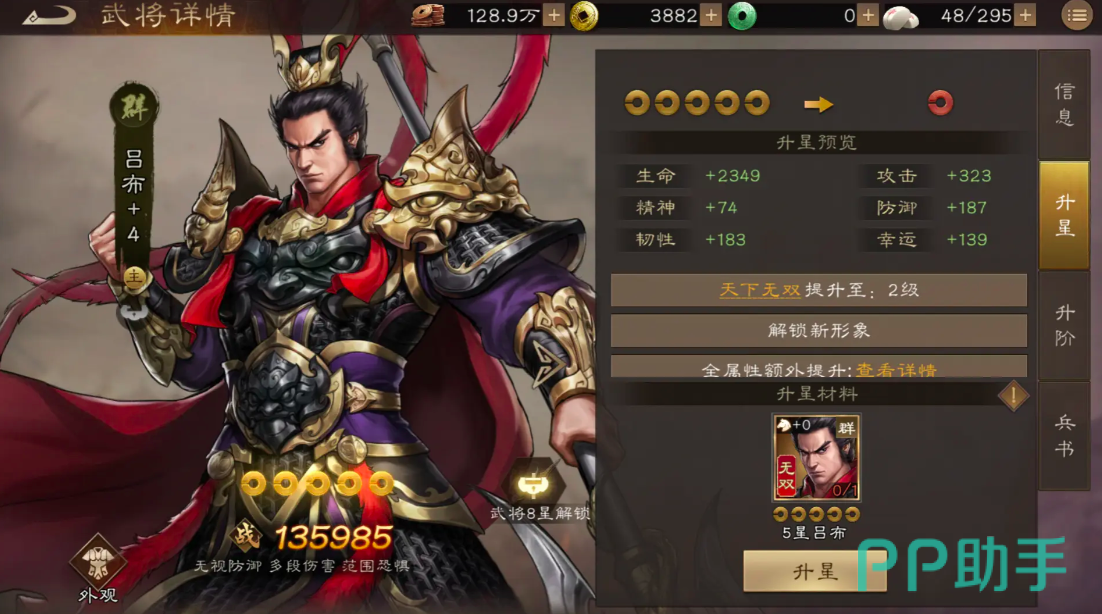 十一星升级材料为一个同阵营八星武将和一个六星本体。