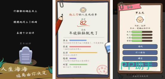 在简洁的画风中,玩家可以选定角色后就开启传奇一生。在成绩单系统中,玩家可针对事业和家庭等不同的板块,选择对应的事件进行体验,最后会有一个总的人生成绩单分数。在结局方面,由于采用了多维度设定,所以玩家可根据自己的喜好决定人生的结局。更多功能方面,玩家还可以点击一起玩板块。