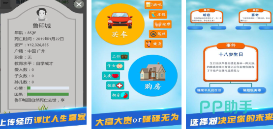 大家一起来开启第二人生吧。在经济行为中,玩家可以自行决定是否买车,既可以从居住和投资两种不同的角度考虑购房问题。在重大事件方面,玩家可体验爱情中的暗恋等多个环节,对于18岁生日这一天,玩家也可以选择不同的过生日方式。在第二人称的体验中,玩家完全可以按照自己喜欢的方式度过一生。