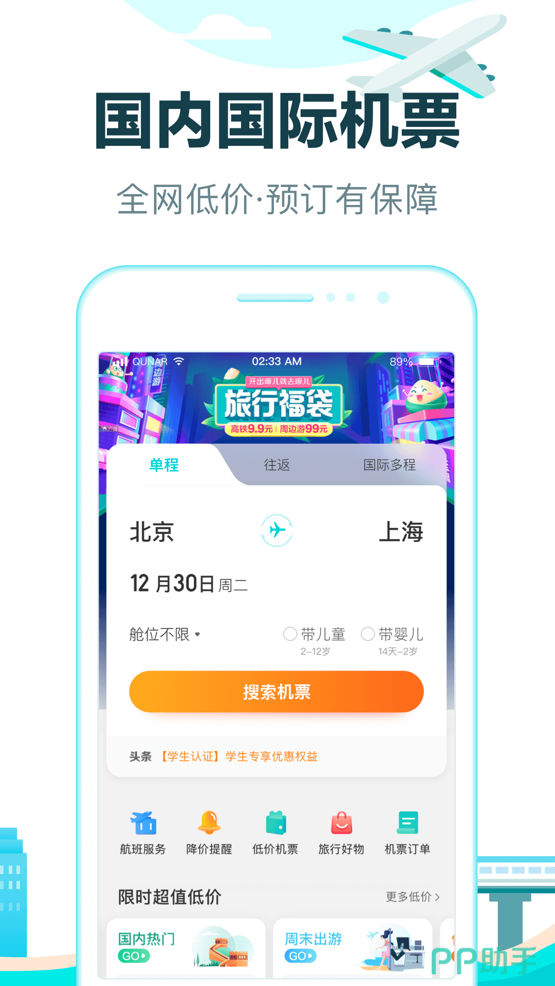 “铁行特价机票”是一款给大家提供特价机票查询、预订等相关服务的订票平台,能够为广大用户提供更加优惠的出行选择。“铁行特价机票”不仅提供国内机票的预订服务,还能够支持国际机票的查询和预订,覆盖全国所有航段,并提供实时更新的航班动态,确保用户能够及时了解航班信息。