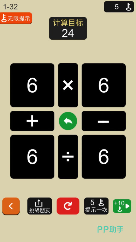 这是考验算术技巧的游戏,游戏有很多的数字,利用加减乘除的方式将结果为24既可以获得胜利,在游戏中选择给出的四个数字,算出24就好,这里既有最简单的算数能力也有更多的变化性,基于基本的数学原理有了更多的变化,游戏按照闯关的模式从,游戏中给出的数字开始会很简单之后会越来越难,这里就到了考验玩家的数学能力的时候,要怎么才能解决如此复杂的算数呢值得思考哦。