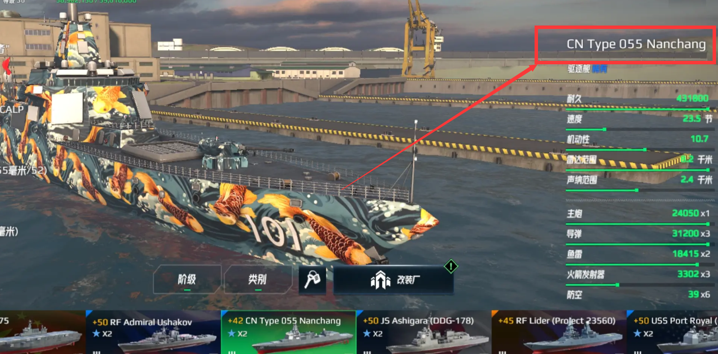 055南昌舰是性价比最高的一艘战舰,其整体数值面板,在输出方面,可以说是T0级别,同时,它需要消耗的金币数值,也是偏低的,非常适合玩家,在前期转型时直接购买。