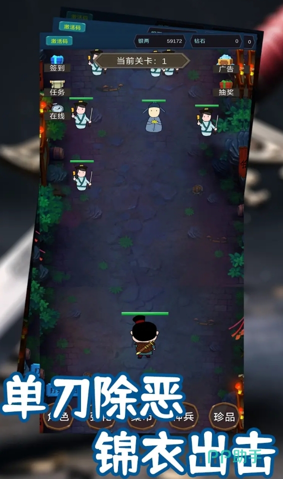 玩家会在这部游戏里成为大明的锦衣卫,并旅行属于锦衣卫的职责,解决影响明朝稳定的一切宵小。游戏有着模式很简单的刷怪玩法,只要不断地击败敌人,就能令自己的角色得以变强,还能用敌人掉落的各种武器和装备来武装自己。此外,这部游戏还加入了挂机功能,即便玩家不在线,角色依旧会兢兢业业地作战,上线即可收菜。