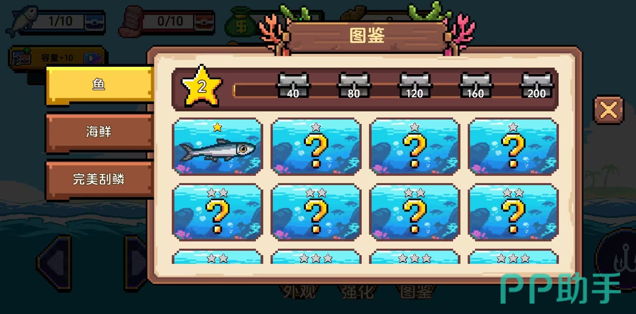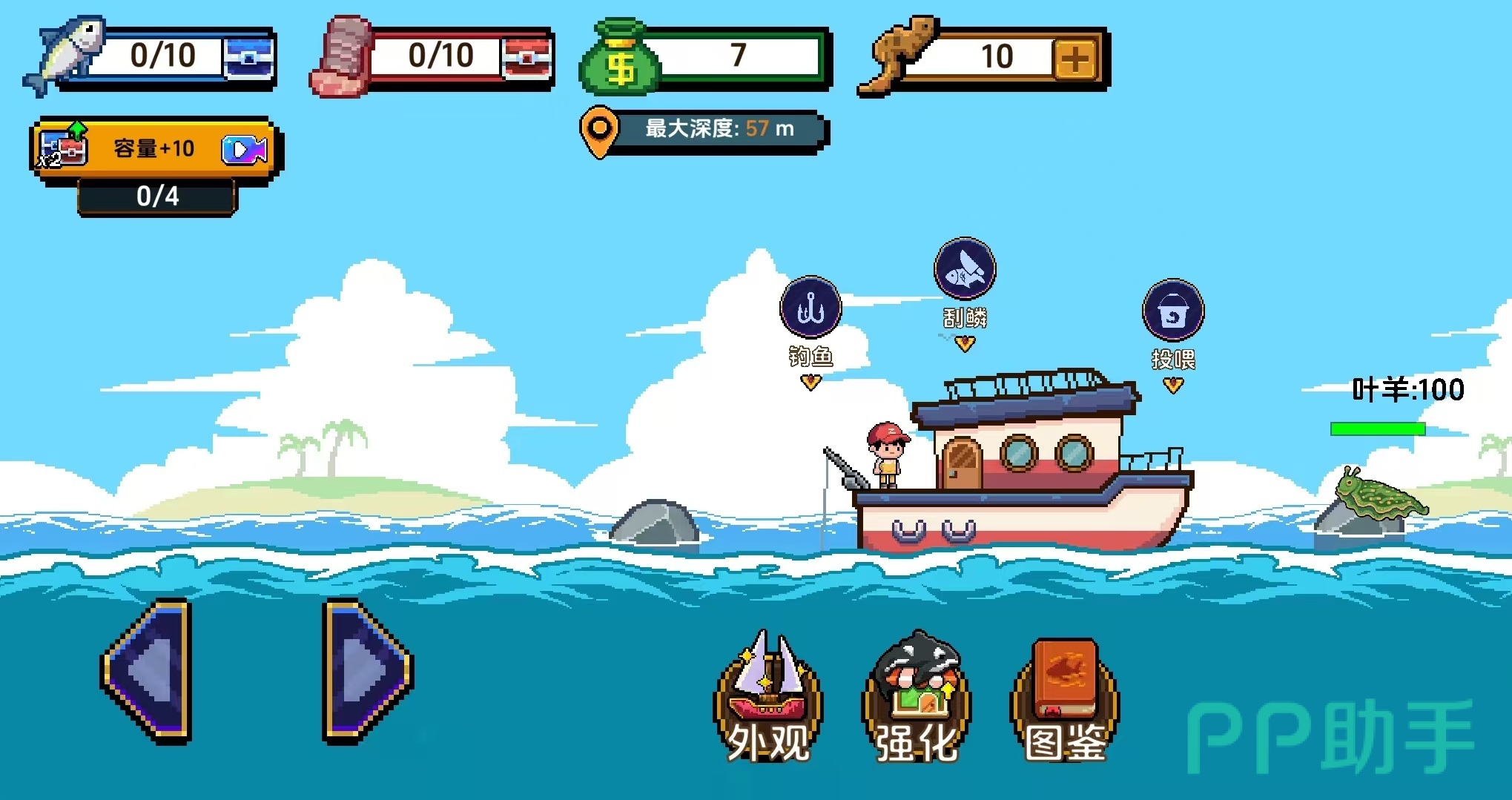 在游戏中进行钓鱼非常简单,直接点击钓鱼按键,然后就可以将鱼钩扔下海里,在水下有很多鱼类,鱼钩碰到的鱼就会被直接勾上去。如果没有碰到鱼,会一直往下降,一直降到最大长度之后会自动收回。为了能够钓到更有价值的鱼,需要大家掌握一些技巧,首先是升级钓具,升级鱼竿之后可以增加钓鱼的范围,升级鱼钩可以提高伤害,有助于钓到那些更难钓的大鱼。