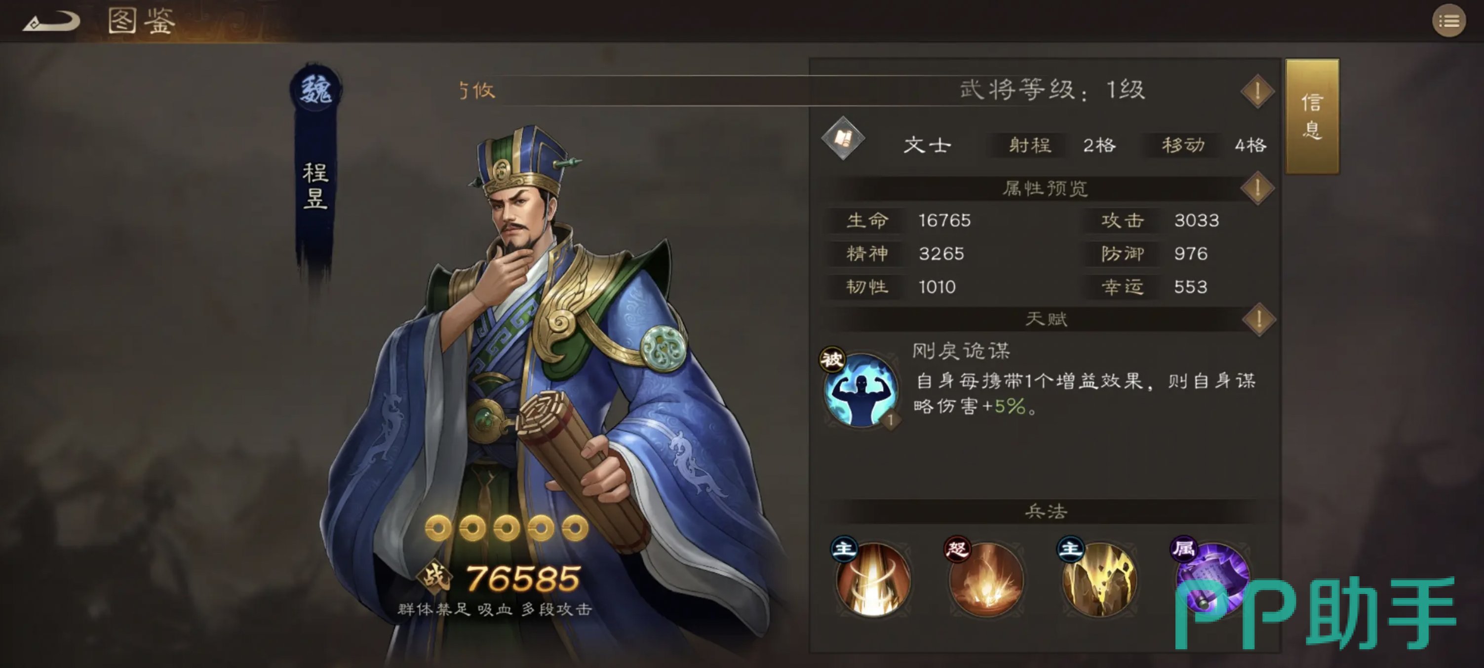 法师推荐程昱或李儒。程昱虽然是普通橙将,但输出不错,被动技能是越叠越强,后期打人非常爆炸,培养成本低。李儒虽然是稀有将,获取难度高一些,但伤害非常恐怖,技能范围广,还附带各种减益效果,是推图利器。