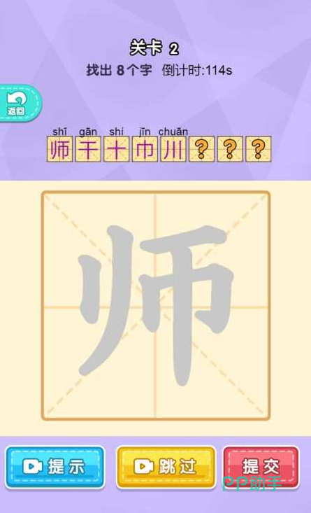 《加一笔成新字》拥有简洁的画面,不会被复杂的设计影响,能让玩家专注汉字变化。游戏内有各种道具,使用后可以给出提示,帮助玩家轻松过关。每个汉字都是在田字格出现,能让玩家懂得规范笔画,领略汉字的美感。配合舒缓轻松音乐,能减少紧张气氛,实现冷静思考。