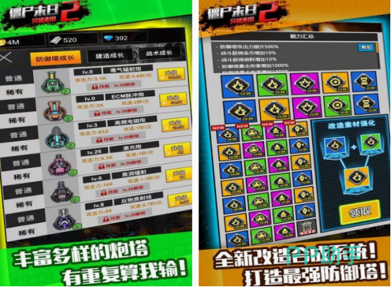 这款置身于末日环境中的策略游戏,会让你面临被僵尸重重包围的环境中,至于自己能否突破重围,也与你的战斗力有很大的关系。还有很多高科技的武器,需要通过及时歼灭僵尸以后,成为最终的获胜者。也融入了经典的塔防玩法,必须要在玩的过程中,使用丰富多样的炮塔,更能避免被教师所突破,也支持全新的改造合成系统,更能拥有强大的防御塔。