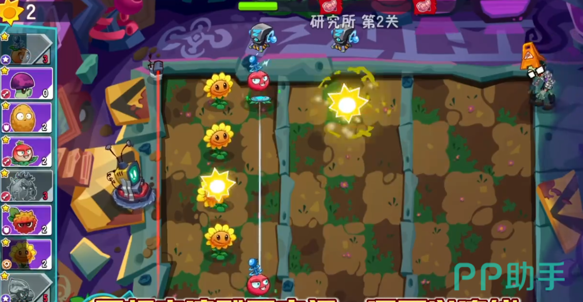 在攻打研究所,这个地图是大家需要先选择一些有用的植物,比较推荐玩家们选择脉冲黄桃,这个植物拥有进化的能力,可以将植物进化成电系,还新加入了发射的装置,造成相关的麻痹以及额外的效果,所以电系的植物是非常重要的,还拥有电流的加成效果。