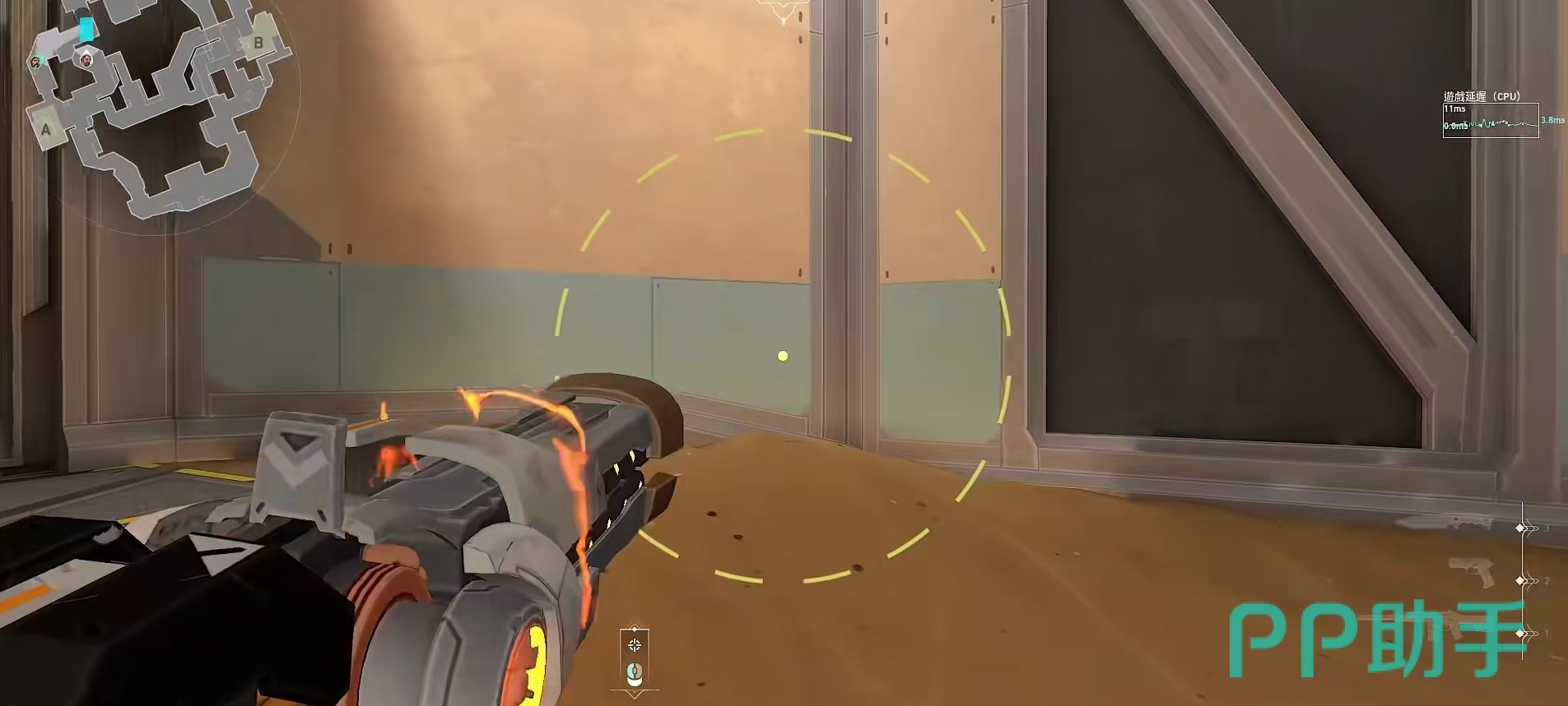 铁壁的第1个技能爆破,可以借助墙体对墙后的敌人造成伤害,在一回合内只能使用一次。在使用时可以先按技能键观察一下地图上的释放距离和攻击范围,此技能应用广泛,无论是守包、清理点位还是逼对方走位,都有着很好的效果。例如对转角位蹲守的敌人使用,必要时也可以直接用于封路或者是干扰对方架枪防守。