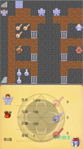 这是一款有着经典像素风策略RPG的游戏,玩家需通过50层塔楼解救公主。游戏以数值策略为核心,每层分布不同属性的怪物、陷阱及隐藏机关。操作上,玩家通过方向键控制角色移动,拾取钥匙、血瓶及宝石等道具,使用黄钥匙开启普通门,蓝钥匙与红钥匙对应特殊门禁。随着楼层推进,玩家将发现公主实为幻象,最终揭露魔王真身,需突破其卫士阵型完成终极对决。