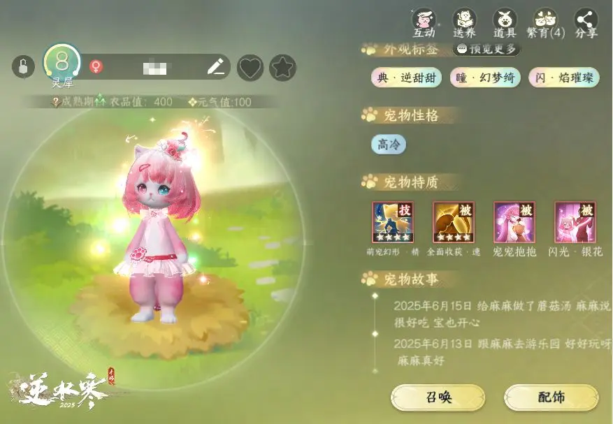 每只宠物的性格和心思都是不同的,语言能力解锁后就能感觉出来,对话的语气,情绪是不同的,它们还会对事物发表自己的看法,宠物会根据当前状态,主动对主人表达心中的所思所想。