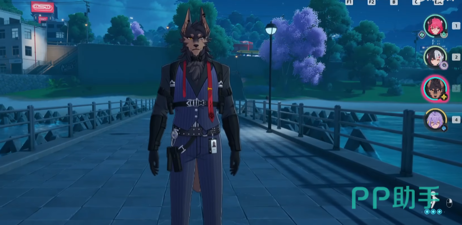 该角色的形象是其中很有特色的一个,帅气的人身,但是却是狼头,表情很酷,眼神坚毅,福瑞控想必非常喜欢。该角色可作为主C使用,近距离输出是他主要的作战方式。正常闪避和别的角色没有太大的差别,长按闪避会让角色化身一团黑水,可通过黑水的形态在地面上移动前进,该形态之下能较为请送的跨越很多障碍物,但是闪避形态下无法过河。