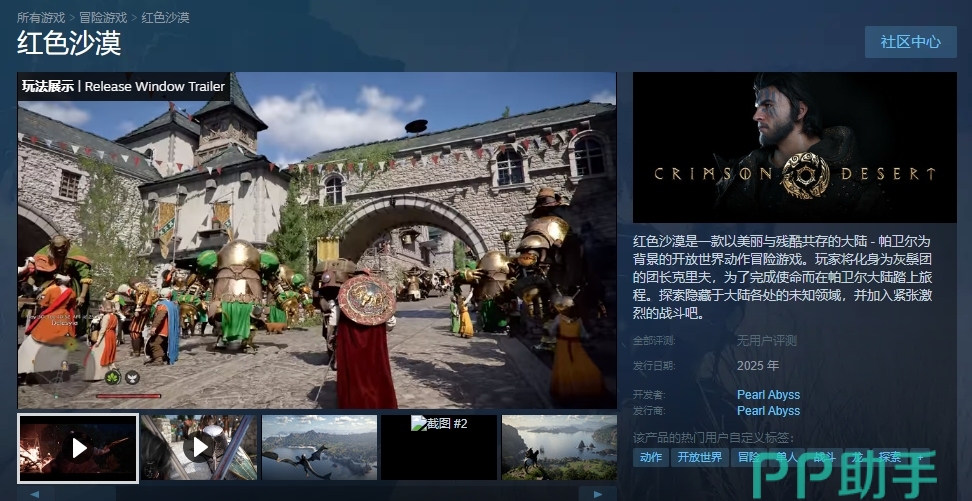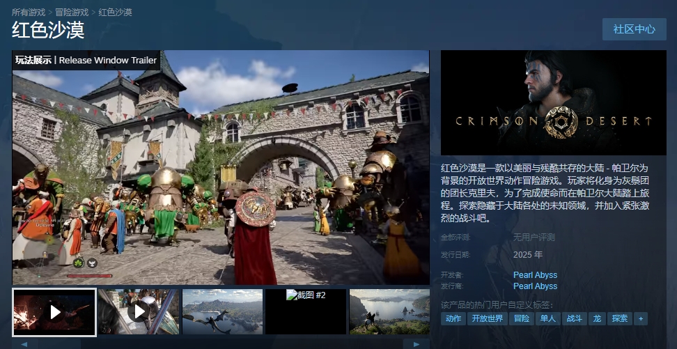 《红色沙漠》在Steam的名称叫做“Crimson Desert”,大家通过中文名“红色沙漠”或者其英文名“Crimson Desert”都可以进入游戏页面。红色沙漠目前还没有正式发售,正处于测试开发阶段,预计将在2025年底登录Steam平台。游戏同时支持多平台、多语言包括简体中文,作为一款冲劲十足的开放世界冒险类型,相信红色沙漠一定不会让玩家失望!