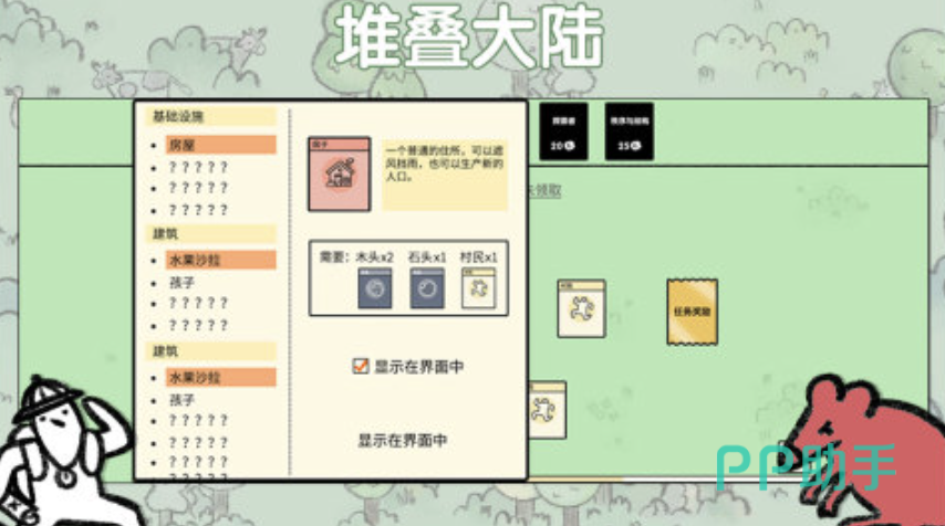 《堆叠大陆》充满挑战与惊喜,玩家需要在村庄生存下去,就需要凭借手气获得卡包,卡包随机开出动物、食物等所生存必须的物品。不同物品能堆叠成新道具,一根树枝搭配一块燧石就能合成篝火,篝火可烘烤肉类食物,提升饱食度。村民是村庄运转的关键,他们帮忙采集探索一条龙服务,但记得每天为他们准备食物,否则会失去生命。