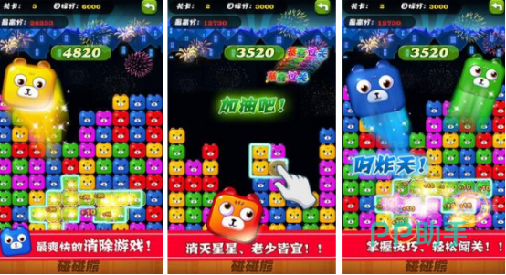 非常可爱,五彩缤纷的小熊给你带来无限乐趣,游戏有相当清晰的画面以及悦耳的音乐,并没有太多复杂的规则,也没有过多分数压力。有萌趣的小熊方块,通过点击屏幕移动方块来完成消除闯关。游戏中的小熊方块设计相当萌趣,视觉效果更是无比精美,成就系统独具特色玩家通过触发高分任务获得奖励。