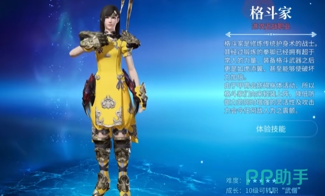 武僧由格斗家转职,使用拳套作为武器,武僧信奉破坏神拉尔戈,擅长赤手空拳战斗,该职业的独特之处在于身形机制,战斗中需不断切换身形,施展不同身形技,同时积攒斗气以释放更强力技能,武僧的普攻速度在众多职业中脱颖而出,并且拥有灵活的位移技能,机动性极佳,不过要熟练掌握武僧的操作,需要玩家花费一定时间练习,上手难度相对较高。