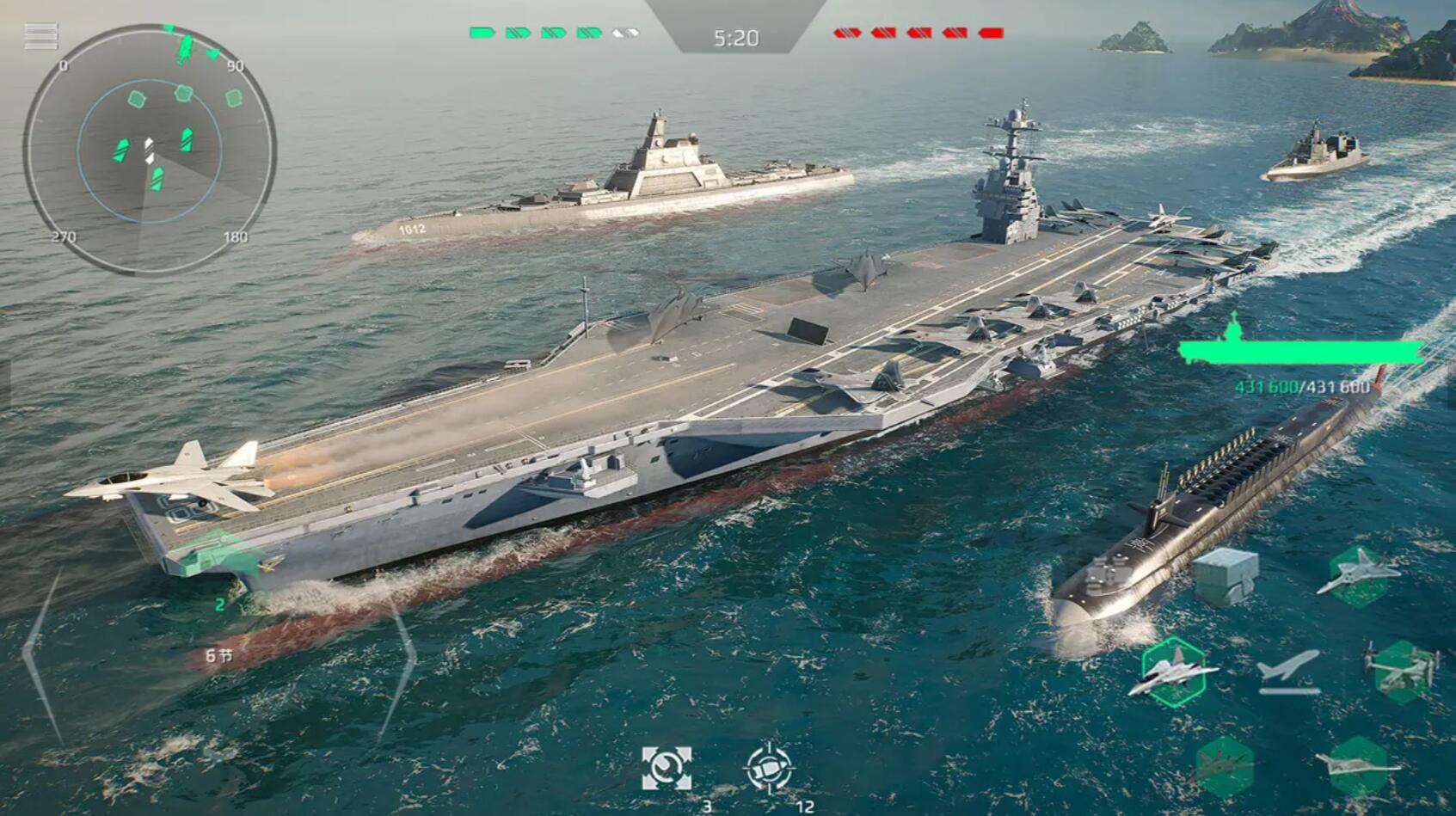 现代战舰的核心玩法是5v5实时海战,玩家可以选择驱逐舰、航空母舰、潜艇等不同类型的战舰,每艘战舰都拥有独特的武器配置,如主炮、导弹、鱼雷等。航母还能搭载战斗机、轰炸机等舰载机,实现海空协同作战。战斗过程中,玩家需要根据战场局势调整战术,比如利用地形掩护、集火敌方关键目标或配合队友进行火力压制。