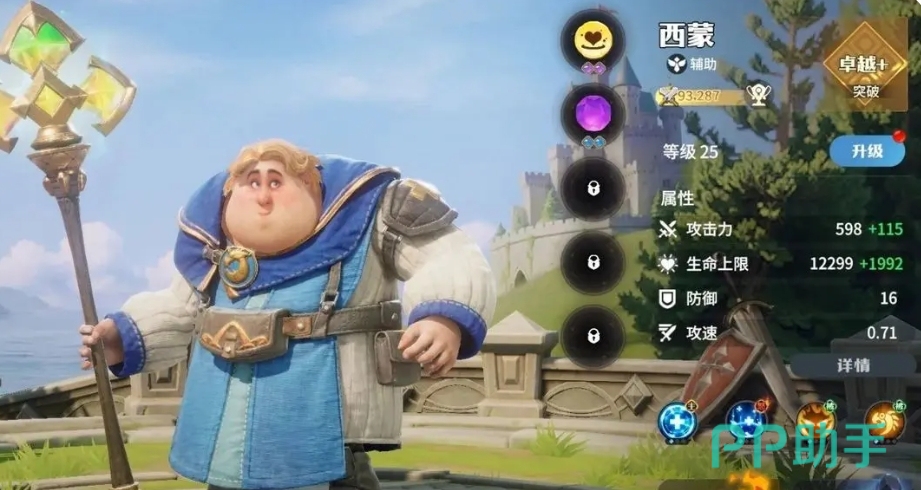 西蒙,这个看似平凡却又蕴含着非凡力量的角色,自幼便被胆小与病弱的阴影所笼罩,长期的病痛折磨,却意外地让他与医术结下了不解之缘,西蒙遭遇了元素水龙的追击之后,拥有神奇治愈之力的龙石,从此西蒙在战场上成为了最重要的辅助力量,他能够运用龙石的力量治愈队友的伤痛,其大招更是神迹,让所有队友的生命力在短时间内得到迅速恢复与提升,整个队伍在绝境中也能凭借这一技能扭转战局。
