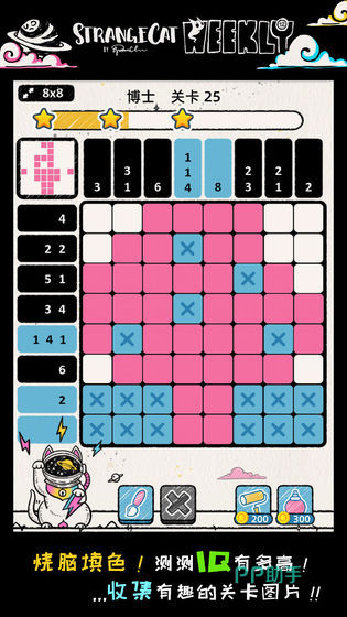 它结合数字解谜与像素填色玩法,需要我们按照格外线索数字,巧妙运用逻辑思维填充方格,当完成填充,一幅精美的像素画便会呈现。游戏关卡多样,难度阶梯式增长,从简单启蒙到复杂烧脑,适配不同水平玩家。其画风怪诞又不失可爱,涵盖著名地标、动物、日常物品及电影等多元主题像素艺术插图 。