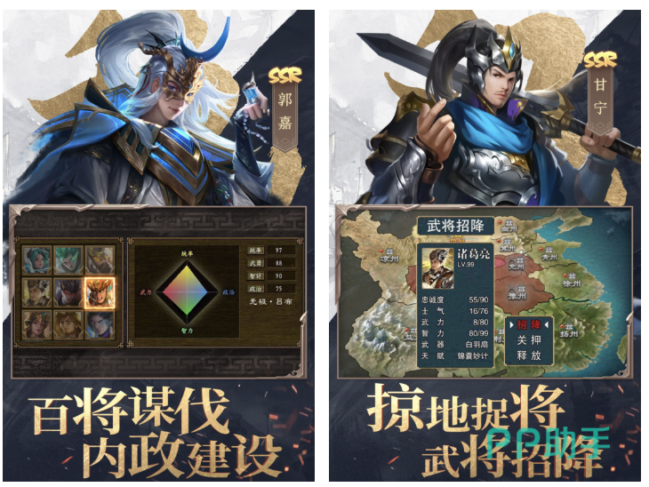 《九州劫》是一款以三国为背景的战争策略手游,大玩法为个人剧情+阵营 PK ,游戏以三国大战场为背景,玩家能带着三国名将闯荡九州,招募各方豪杰交流。个人剧情地图就像单机游戏,玩家能在里面养兵,不用担心被掠夺。跨服阵营地图则是和全服玩家 PK,能体验到百城万将争夺的刺激,而且每轮pk对手都是随机,不会觉得无聊。