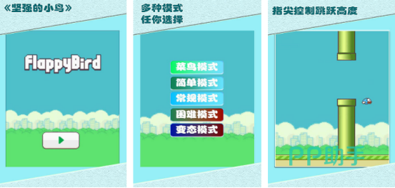 小鸟作为这款游戏的主要角色,简单易上手的操作方式,对于年龄段并没有任何的要求,在开局之后将会看到非常可爱的像素,小鸟风格通过点击屏幕的方式就能操控其中的小鸟逐渐向上,并且在蓝天白云当中自由飞行,然而在此过程中也会呈现出很多的障碍物或者不同的挑战,需要操控其中的鸟类克服重重障碍,最终成功到达终点。