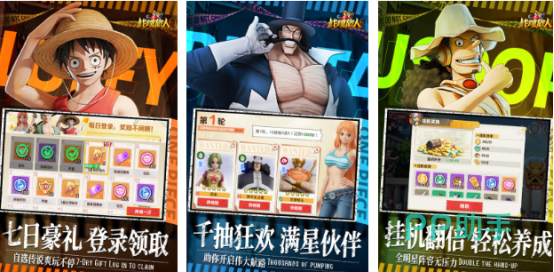 以有趣的航海王ip改编而成,小伙伴们能够在这里体验航海王原版快乐。高度还原各种角色以及特色场景,整体的画质极高,而且设计的惟妙惟肖,游戏当中拥有偶相当独特的豪华阵容,也有阵型自由搭配,各位小伙伴们可以选择自己喜欢的角色组建,成为超强的旅团。丰富的游戏资源以及社交互动模式,全面增加玩家之间的互动欢乐。