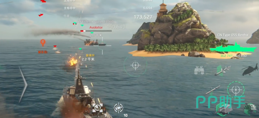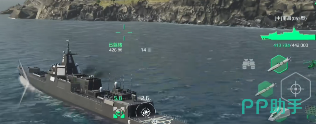 055型驱逐舰的转向表现亮眼,战术核心是依靠引擎过载技能,在不开启的情况下,倒退速度已达12节,且在转弯过程中不会损失速度,前进速度稳定在25节;而开启过载后可瞬间提速至30节。得益于高速与灵活的特性,055能快速规避敌方火力,迅速进入掩体规避伤害。