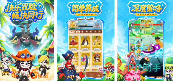 整体的冒险元素较为丰富,卡通画质比较精美。养成玩法比较简单,玩家点击相关人物的卡片就可以进行收集,比如经典的火拳小子。策略元素比较丰富,玩家可以与不同种类的深海怪物进行决斗,大多数都会有15个回合。除了在地下市场交易外,玩家还可以前往海上寻宝环节,获取更多的物资,提高整体经济效益。