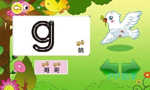 《宝宝识汉字学拼音》游戏致力于打好宝宝的拼音基础。为了帮助宝宝更快熟悉拼音,游戏不仅有每个字母书写笔画的介绍,还有与拼音意思相符合的卡通图片。每个汉字上面都有相应的拼音,宝宝可以对照汉字学习拼音。