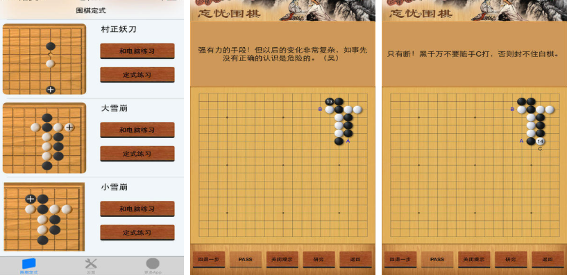 在围棋定式练习游戏中,专注于围棋定式学习,为玩家提供系统的定式练习,在人机指导下,玩家能循序渐进学习各种常见定式,从基础定式的一手定型,到复杂定式的十几手变化均有涉及,游戏操作方式流畅,采用竖屏设计,玩家只需简单拖动棋子即可落子,过程中伴有清晰落子音效与舒缓背景音乐,营造轻松学习氛围。
