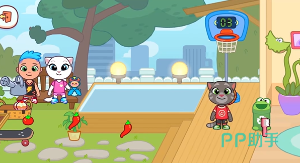 这里的核心玩法是与不同的角色自由互动,大家可与汤姆猫、安吉拉、汉克狗等角色互动,喂食、换装、录制小剧场。之后还能针对不同的场景进行深度探索,期间可以解锁隐藏彩蛋(如变身药剂、飞天特效等)。甚至可编排自定义剧情(如恶作剧、求婚等),并录制分享。