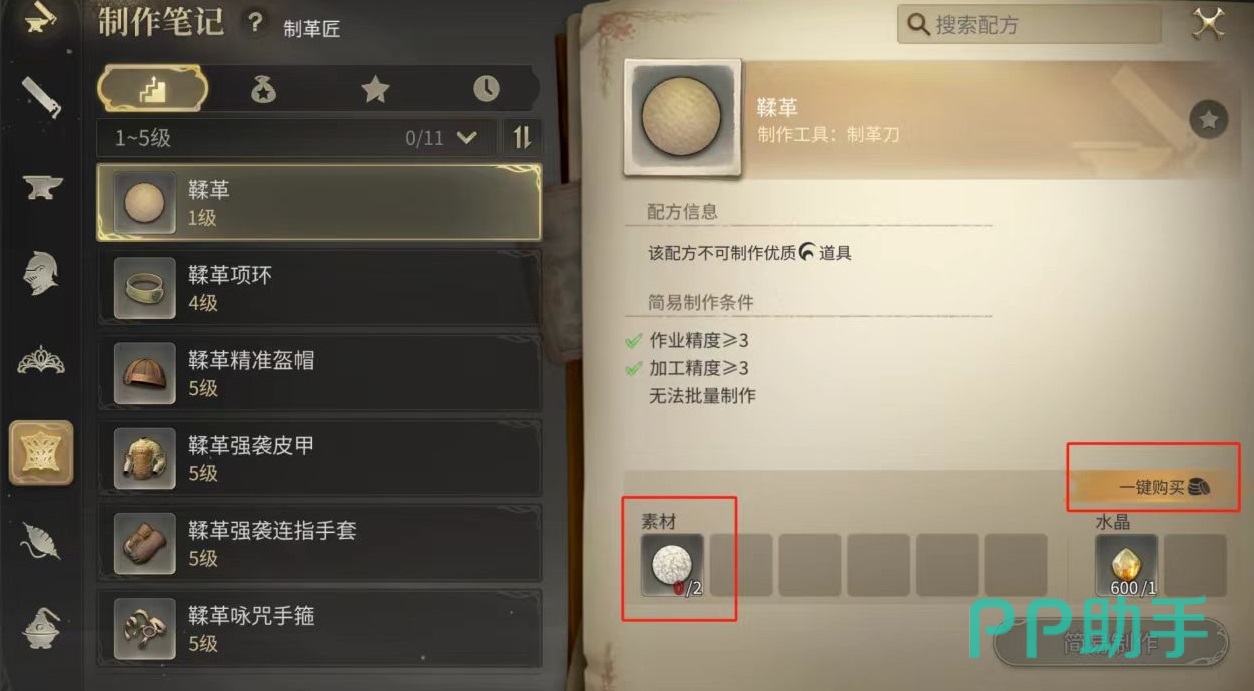 如果大家想要成制革匠,首先要进行转职,任一职业达到10级后,都可以去格利达尼亚旧街和制革匠行会的接待员进行对话,在完成一个很简单的任务之后,就可以转职成为制革匠了。刚刚转职称之后等级非常低,需要大家快速将等级提升起来,在不同等级,有着不同的制作物品,为了能够达到最高效率,在1~15级推荐制作硬革等物品,材料可以通过商人直接购买或者是自己狩猎获得。