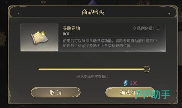 要是大家打算解锁自动寻路的话,第一件事情就是购买寻路卷轴。这时可以点击游戏主页右上角购物袋图标,接着就可以进入商城了。最后在道具分类中找到“寻路卷轴”(售价1元),购买后即可永久解锁自动寻路功能,所以价格颇为诱人。