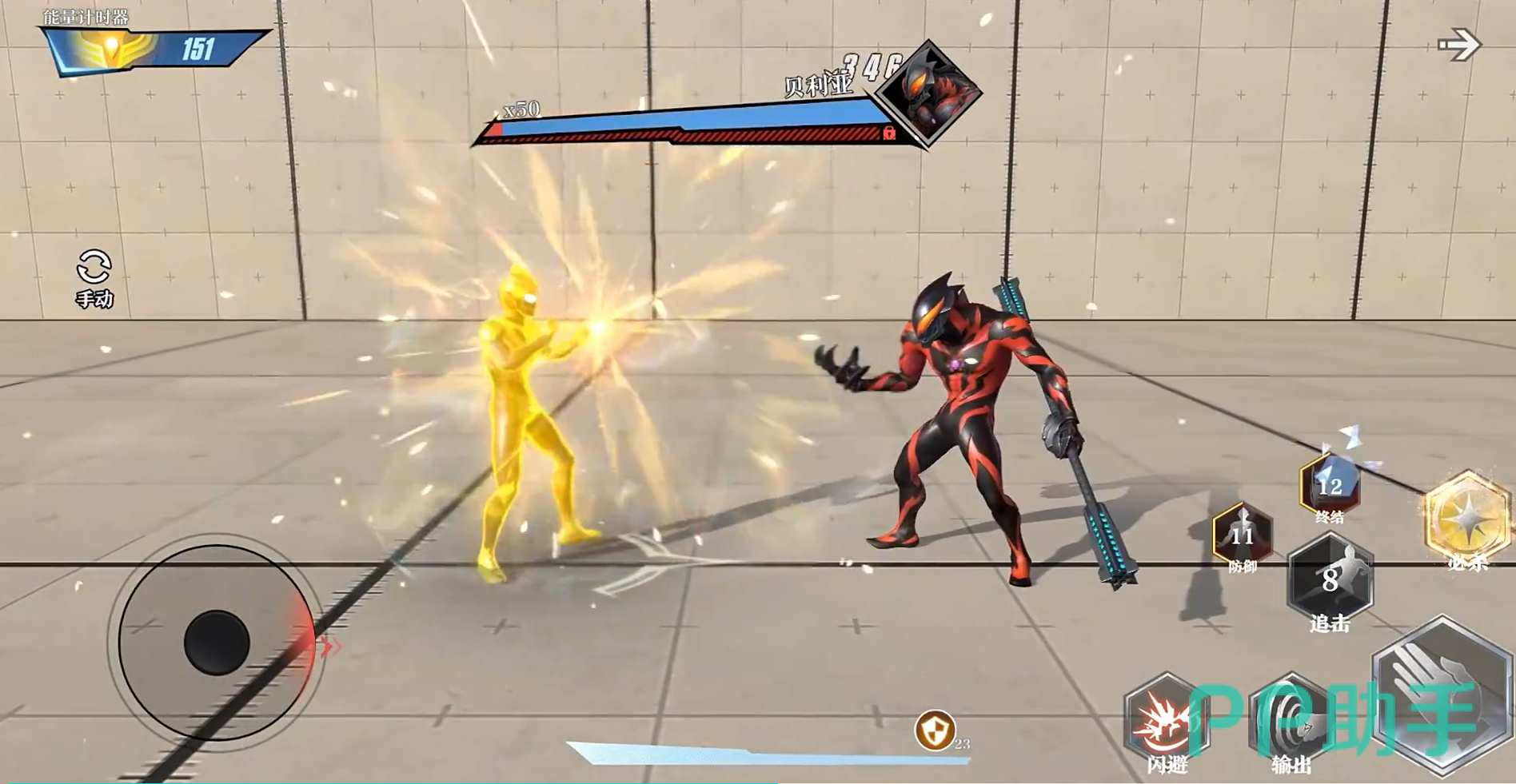 闪耀迪迦还拥有强力突进技“闪耀飞踢”,不仅能飞踢命中敌人,还会自动接上肩撞连击,持续压制敌人,并可组合释放哉佩利敖光线等高能技能。而他的终极招式“闪耀计时器闪光”则是从胸前的计时器发出毁灭性光线,是其代表性的必杀技,威力远超一般技能,在关键时刻可直接决定战局走向。