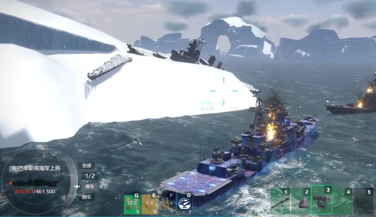 伏击战术是贝西蒂的核心玩法,开局直冲地图边缘山体(如北极图的冰山群或破碎群岛的礁石区),卡掩体仅露出主炮射界。敌人进入到5公里范围,先以203mm主炮轰击其舰桥(触发暴击率加成),待其热诱弹耗尽后,全速前冲至3公里内释放AS-21火箭炮。重点规避开阔水域,贝西蒂转向需12秒,若被灵活的驱逐舰绕侧就会非常麻烦。