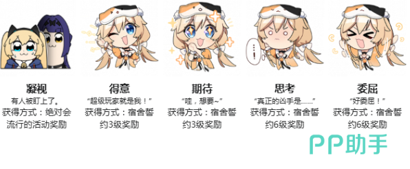 总之在游戏中的表情包还是比较多的,例如还有宿舍誓约奖励表情包。那傲娇的小脸上满满都是得意的表情,整体的氛围感还是比较出色的。每一个表情包可以让玩家享受到不同之处,玩家也可以在交流的时候直接使用这些表情包。