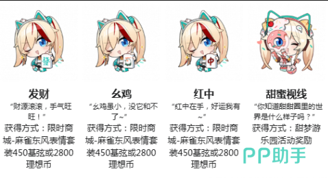 其实这一个角色的表情包还是很多的,值得大家关注。玩家可以先看一下限时商城这里就会有一些专属的系列,例如发财,还有系列。米雪儿举着手中有字的小牌牌,看上去真的非常的可爱,上面还有一些字,例如财源滚滚,手气旺旺。红中在手,好运我有。