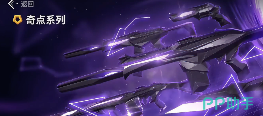 除了奇点套装,紫色套装也是游戏里很受玩家欢迎的皮肤系列。紫色套装整体价格大概在860元,比奇点套装要便宜一些。在紫色套装里,刀皮单独购买大概430元,枪皮单独购买大概215元。虽然紫色套装价格更亲民,不过在皮肤的特效呈现和细节设计方面,可能比奇点套装稍微差了那么一点点吧。