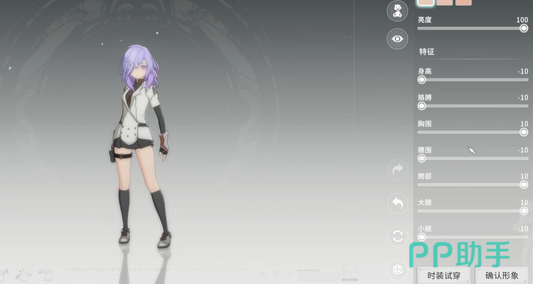 最后就是皮肤以及肢体,皮肤的饱和度选择100,这样看起来就很光亮,就很活泼的感觉,接着肢体的所有选项都选择-10,这样看起来所有的身体都不会显得很壮,更符合少女的体型,而且小巧玲珑的搭配其他衣服也更为漂亮,关于服装的选择可以根据玩家自身的喜好进行选择,这边是推荐魔女套装,这样搭配起来才有一种天才美少女法师的感觉。