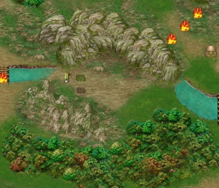 这个关卡的核心机制在于地形差距以及兵种克制,首先山贼在树林等地方可以获得属性加成,同时骑兵无法通过森林的视野完成压制,使得冲锋毫无优势,所以这个关卡无法完成速攻流派,需要玩家使用山贼单位进行进攻,而进攻的位置多数还是在山林地带,这样可以获得属性加成。