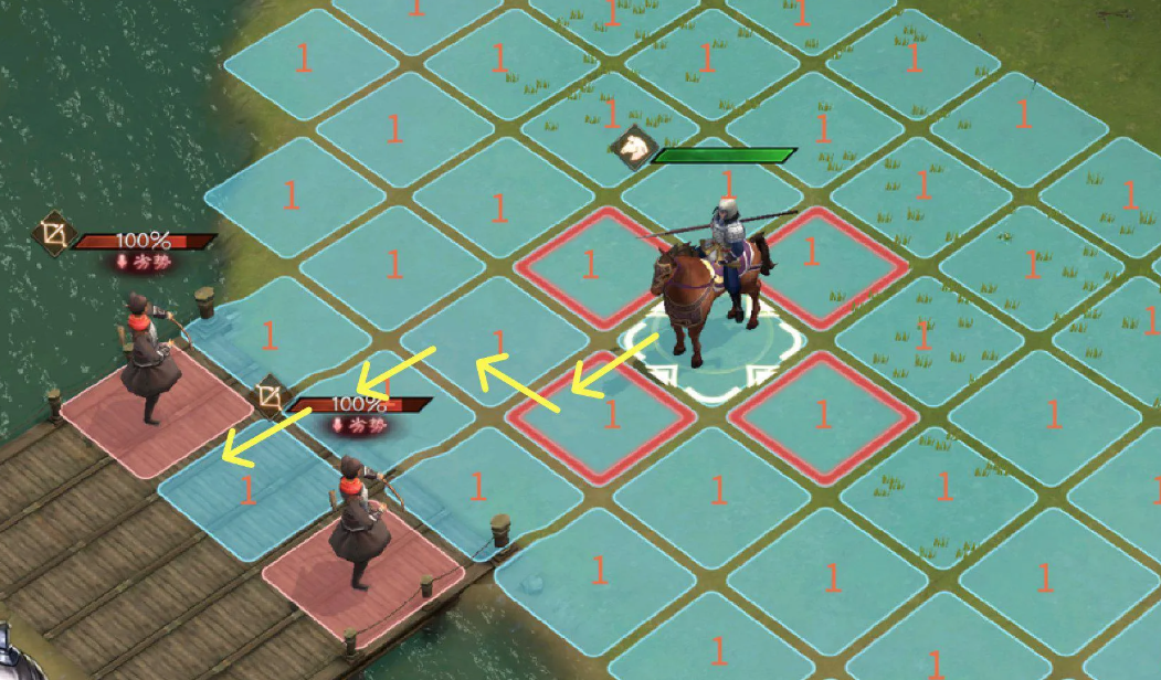 这种移动方式,会让对面的阵营慌乱,将原本比较强大的阵营弄成四分五列,而我方就能占据人数优势去集火对面的落单单位,一般情况下三个山贼是足够秒杀对面的单位,而且即便阵亡一个,整体的兵种数量还是比较占据优势,为了避免敌方有后排突然,可以在后排放置两个山贼进行阻挡。