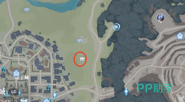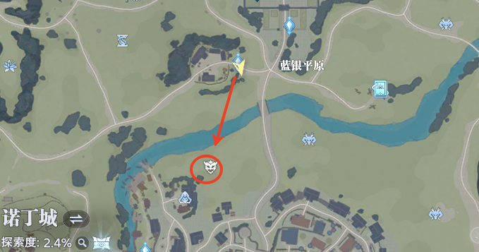 然后是第二只,这只是在诺丁城地图顶部区域的蓝银平原下方,大家可以先传送到“蓝银平原·西”这个传送点,然后向下方走,在“邪矛魂师”这个据点的右上方就可以找第二只。
