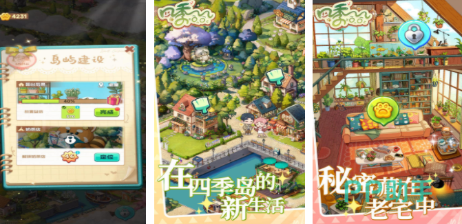 四季合合会设定一个非常治愈的岛屿,在这个海岛中,玩家可以自由地种植农作物,然后利用这些成熟的农作物制作各种美食,另外还能在游戏里,自由的进行房屋的装扮,到处都会被鲜花和绿植覆盖,游戏里还会设定一个非常自由的海岛,每个玩家都能在这个海岛上,开启自由自在的生活,岛屿建设,店铺经营多种不同的玩法,等待玩家来尝试。