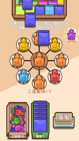 在游戏中,玩家只需翻动卡牌,就能解锁各种造型可爱的小乌龟,开启精彩的对对碰之旅。游戏里考验记忆力的对对碰玩法十分独特,让人印象深刻,而特别的融合消除设定还能锻炼玩家的反应能力。整个游戏洋溢着欢快的氛围,大量萌趣十足的乌龟图片,搭配上舒适的视听效果,让众多对对碰游戏爱好者深深着迷,趣味满满的对对碰合成机制更是让人欲罢不能。