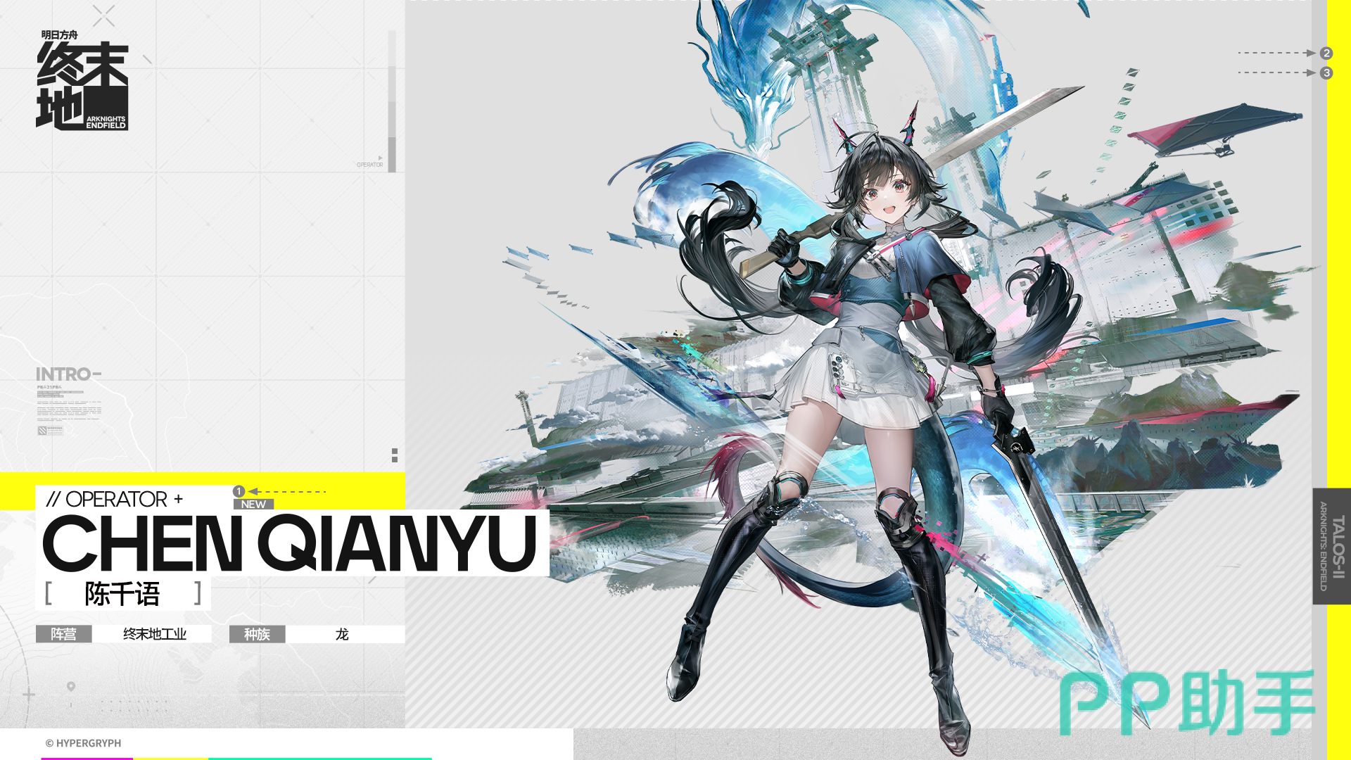 在游戏定位中是一位具有稳定输出的特勤,拥有着真龙特征的外貌,通过持久生存能力可拉长战斗。技能由追击、归穹宇和冽风霜组成,追击可将普攻增强到180%的攻击效果,归穹宇带来的位移,不仅能躲避敌人攻击,还可闪现到敌人面前释放物理伤害和击飞,搭配破刃就可造成结晶强化伤害。冽风霜可对敌人造成八次击杀和击飞效果。